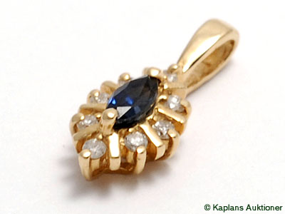HÄNGE, 18K guld med 1 safir samt diamanter, vikt 0.8g.