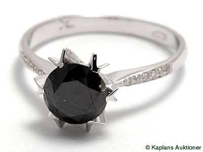 RING, 18K med svart diamant ca 1,35ct och dia ca 0,08ctv, stl 17,5 vikt 2,8 g.