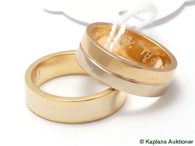 Ringar, 2st 18K en med diamant 1xca 0,05ct graverade Ø17 1/4 Ø17 1/2 15,6g
