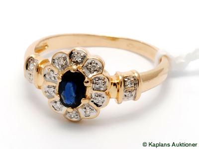 Ring, 14K med blå sten och diamanter 14x0,01ct Ø18 1/4 2,8g