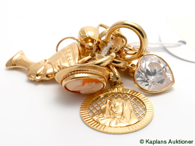 Partiguld, 3 par Örhängen, 8 Berlocker 18K 18,4 g