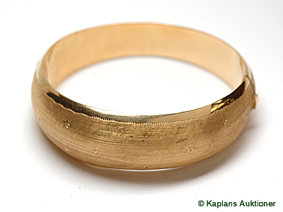 ARMRING, 18K m matterat stjärnmönster, ihåligt, 5,6X6,1 cm, vikt 31,5 g, orginalask.