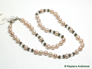1 Collier i silver med lila glas/sten kulor samt 1 Par Örhängen i silver med lila glas/sten kulor