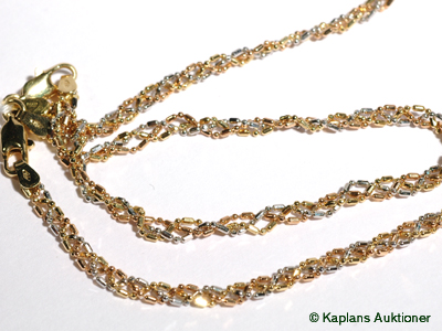 1 Collier ca 42cm & 1 armband ca 19cm, vg/gg/rg, 18K. Vikt 10,4g