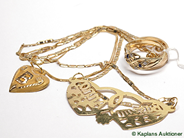 2 collier med 1 hänge och 1 namnbricka, 1 ring 18k 11,8gr, 1 ring 14k 1,5gr. Vikt 13,3g