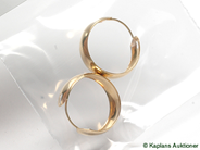 2 hängen, 2 ringar varav 1 är bucklig 18k 8,5gr, 1 ring med vita stenar 14k 2,4gr. Vikt 10,9g