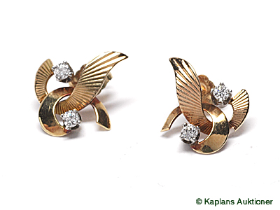 1 Par örhängen med dia ca 4x0,04ct, 14K. Vikt 2g