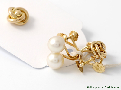 Örhängen, 5 st två med pärla två med sten 18K 5,6g