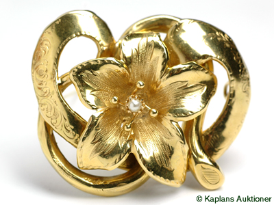 BROSCH, 18K guld med pärla, vikt 8,7 g, svensktillverkad 1860.