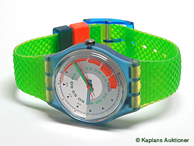 SWATCH, herrur, plast, quartz, plexiglas, plastband, oanvänd, ca 1995, box.