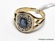 Ring med blå sten & rosenstenar stl 17. 18K. Vikt 4,3g