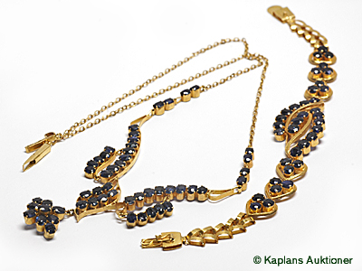 COLLIER, ARMBAND, 22K guld med safirer, vikt 24,1 g totalt, längd 40 cm och 16 cm