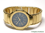 YSL, herrur, nr. 04 B 12572, gulmetall, quartz, mineralglas, datum, integrerad länk, längd 182-187 mm, ca 1985.