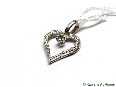 1 Berlock vitguld "hjärta" med grön sten & diamanter ca 0,07ct (14st), 18K. Vikt 1g