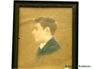 1 Tavla, blandteknik, sign David Tägtström 1912 "Ung man i profil",ca38x48cm (defekt-saknar bakstycke) (d)