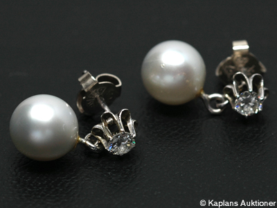 ÖRHÄNGEN, 18K vitguld, odlad pärla ca 8 mm, 2 briljanter ca 0,26 ctv ca G(TW)/VS, stift, vikt 3,1g.