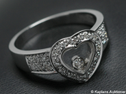 RING, 18K vitguld, hjärta, 25 diamanter (en rörlig) tot ca 0,15ct, stl 18 mm, vikt 5,5 g.