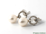 ÖRHÄNGEN, 14K vitguld, 2 odlade sötvattenspärlor, ovala, 10 briljanter ca 0,14ctv ca TW/P2, nagg, 11,7 g.