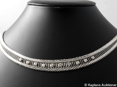 1 Collier vitguld med diamanter ca 1,0ct (10st, 1 naggad), 46cm, 18K. Vikt 55,4g