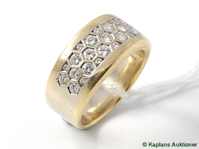 1 Ring rg/vg med diamanter ca 0,95ct (27st), stl:18 3/4, 18K. Vikt 13,5g