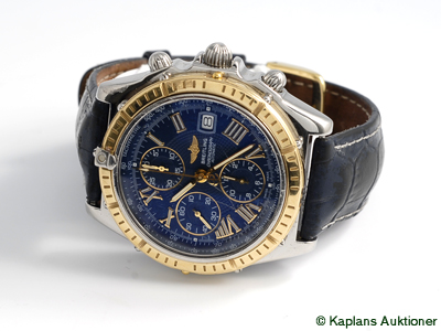Herrur, Breitling Chronograph automatic med guldring (något repig), 3 raiders saknas, läderband ej Breitling org.