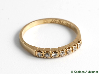 Ring, 18K graverad med diamanter 7xca0,02ct Ø16 1/2 1,7g