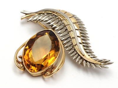 BROSCH, 18K guld, citrin, vikt 23,4 g, 4,5 x 4,9 cm.