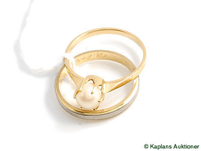 Ringar, 2st 18K en med gravering Ø16 1/2 en med defekt pärla Ø17 3,9g
