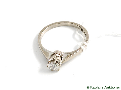 1 Ring, 18K, med dia ca1x0,40ct, Stl: 16 3/4. Vikt 3,1g