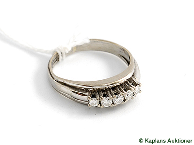 Ring, 18K vitguld med diamanter 3xca 0,05ct 2xca0,03ct Ø18 1/4 5,5g