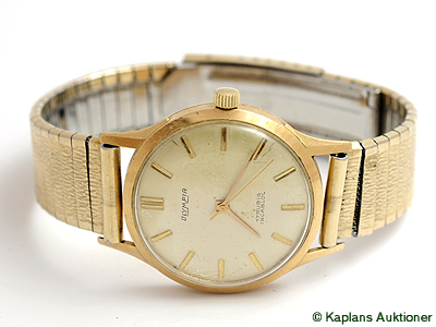 OLYMPIA, herrur, 18K guld, manuell, plexiglas, skadad urtavla, ca 1965, metallänk ej original.
