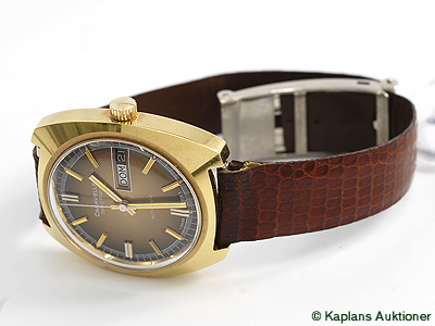 Herrur, Caravelle Set-O-Matic automatic, doublé, läderarmband viklås, plexiglas, dag, datum ca 1974