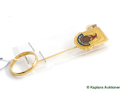 Diverse, 1 Nål "småklubbarnas samorganisation förtjänsttecken", 1 Slät ring graverad, 1 Örhänge med pärla allt 18K