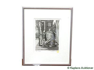 Etsning, signerad Åke Lyrholm "Brygga" 1989 4/40 ca 16x12 cm