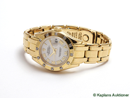 ROLEX, Oyster Perpetual, Lady Datejust, Pearlmaster, Chronometer, Ref nr. 69318, Serie nr. W494098, damur, 18K guld, automatisk, safirglas (nagg), datum, briljanter på glasringen (12 st. TW/VVS, ca 0,13 ctv), skadad sarg, Pearlmasterlänk, viklås, Ref nr. 72948 T8, ca 1995, box.