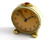 CAMY, Alarm, väckarur, gulmetall / läder, mekanisk, fodral i form av en bok, ca 1960.