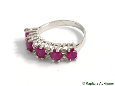 SAFIRRING, 18K vitguld, rosa safirer och diamanter ca 0,05 ctv, vikt 4 g, stl 17,25 mm.