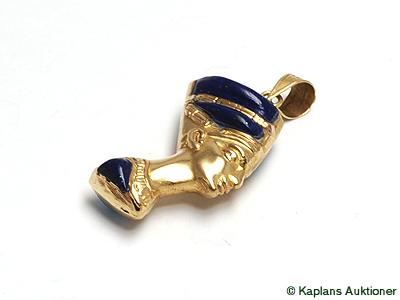 HÄNGE, 18K guld med lapis lazuli och turkos, egyptiskt kvinnohuvud, vikt 3,3 g.