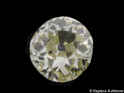DIAMANT, 0,91 ct, gammalslipad, ca Cape(M), stora naturaler runt rondisten, i övrigt små inneslutningar.