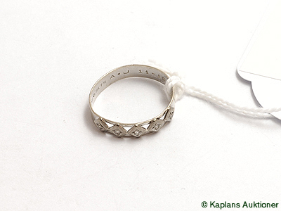 Ring, i vitguld med 5 små diamanter o gravyr Ø16½ 18K 1,3g