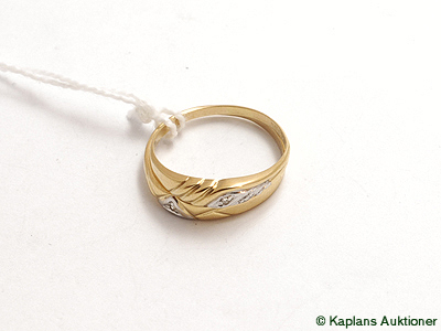 Ringar, med små diamanter Ø18¼, 18½, skev skena 18K 2,2g