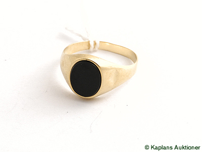 Klackring, med svart sten 18K skadad Ø19 3,2g