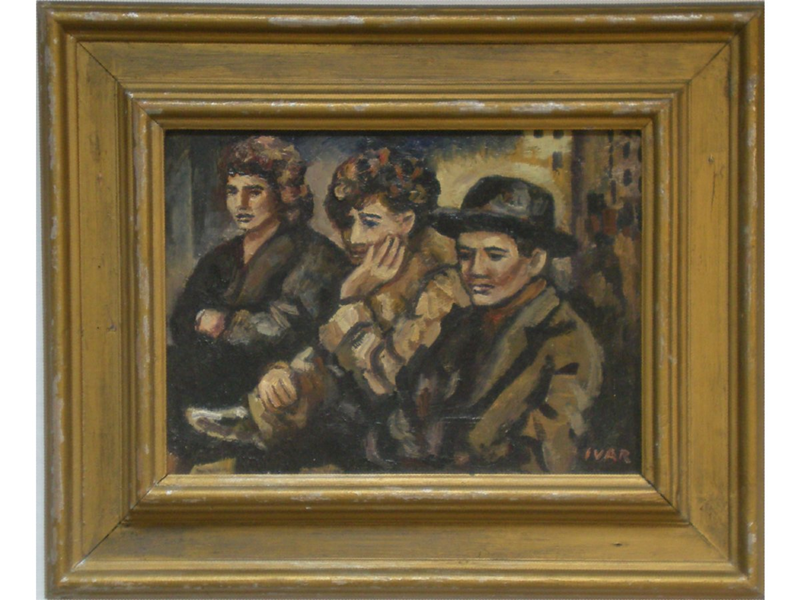 Alf Ivar, olja på pannå, " Tre vänner" 42 x 35 cm