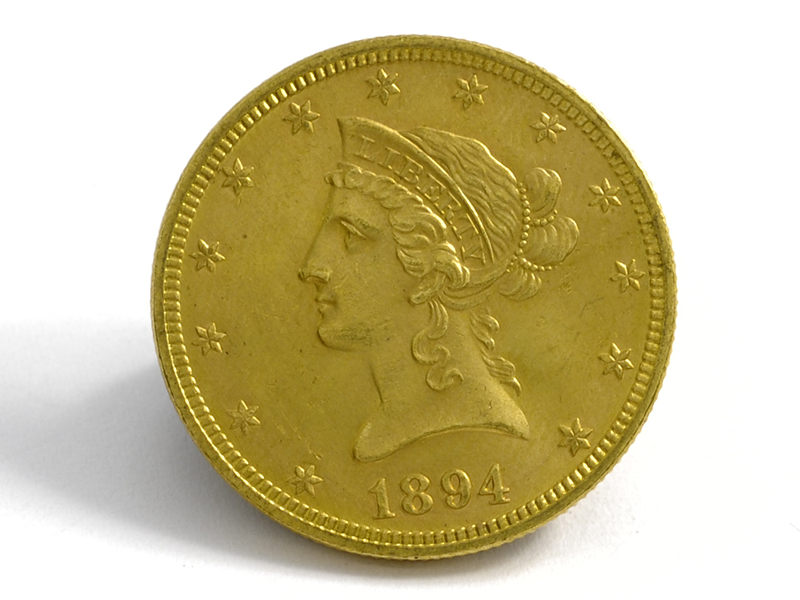 MYNT, 21,6K guld, 10 Dollar, 1894, "Half Eagle", vikt 16,7 g, diameter 27 mm