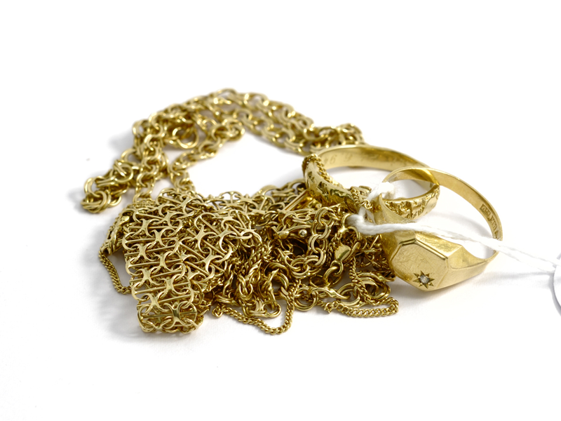 Parti Guld, defekta och graverade smycken 18K 41,7g innehåller stenar