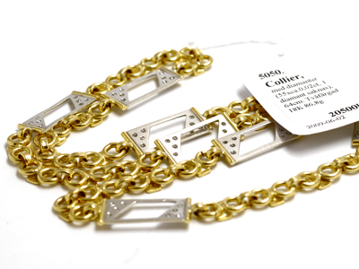 Collier, med diamanter (55xca.0,02ct, 1 diamant saknas), 64cm. Tvåfärgad 18K 86,8g