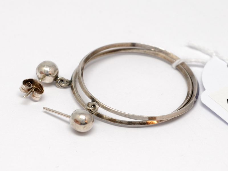 Örhängen, ett par i silver, 5,2g, ett stopp saknas