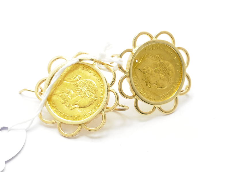 Örhängen, 1 par 14K med myntliknande föremål 12,8g