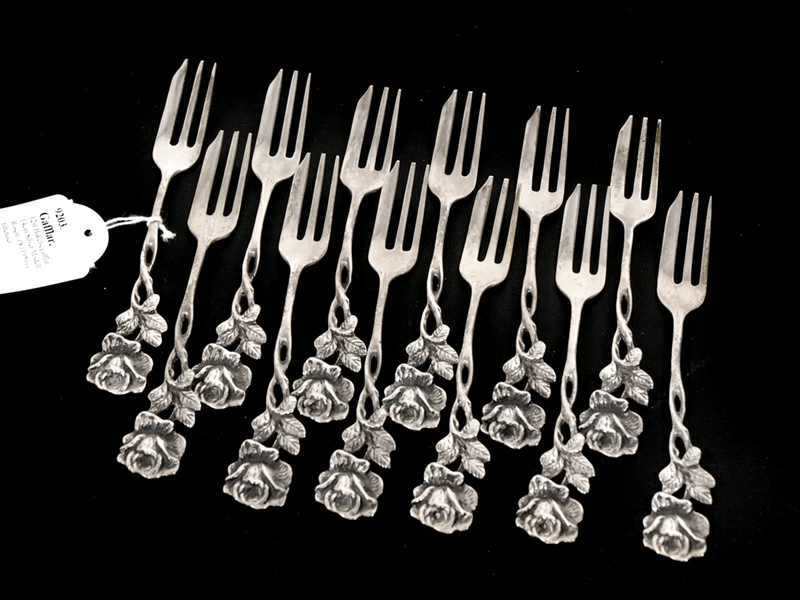 Gafflar, 12st Bakelsegafflar 14cm Silver Modell: Rosen, Z8 (1950) i filtetuier