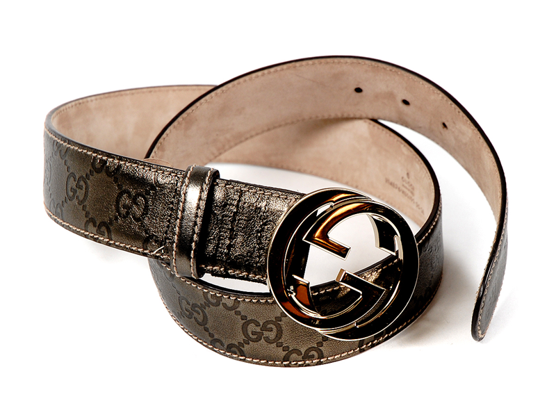 SKÄRP, GUCCI bronsfärgat läder st 95 bredd 4 cm